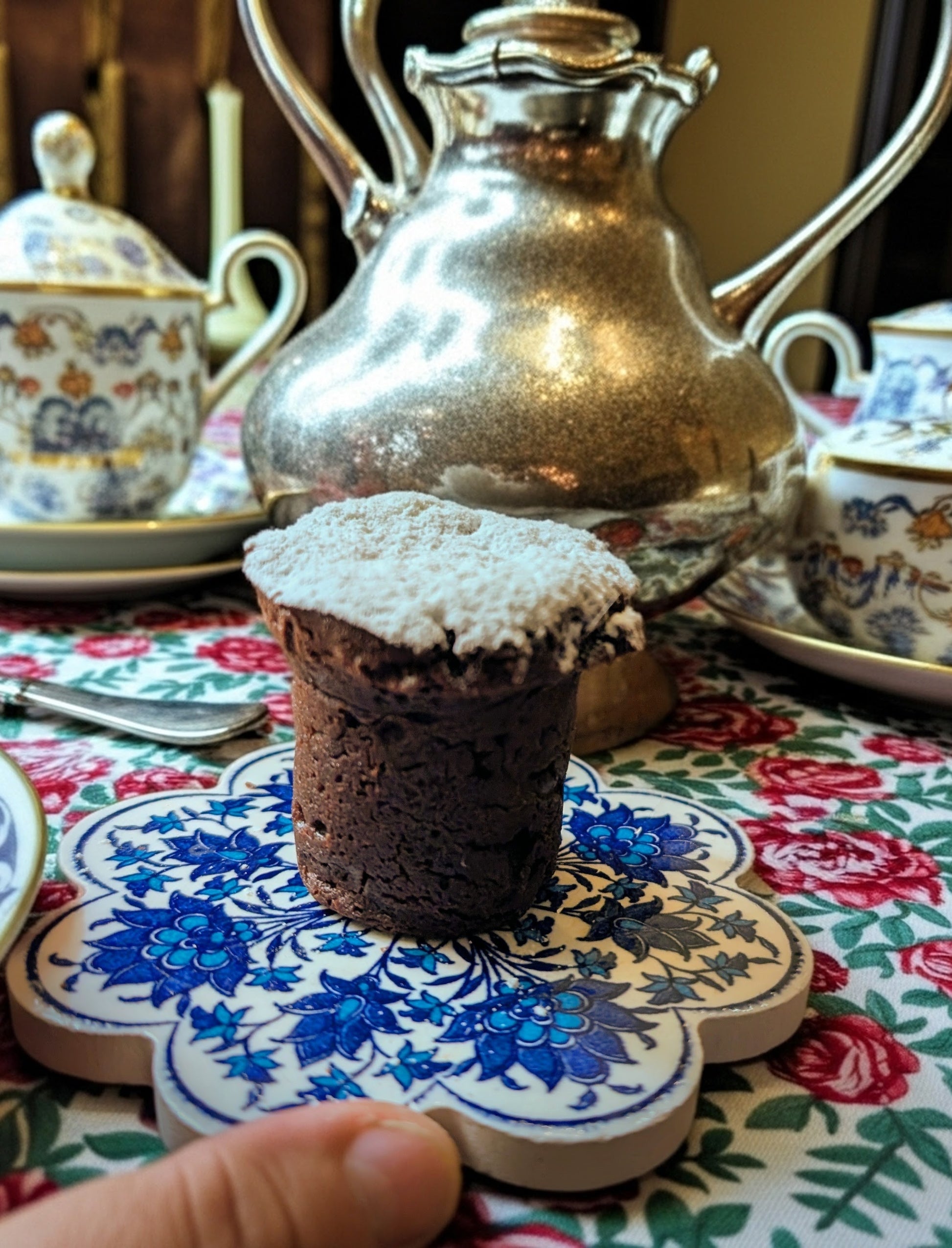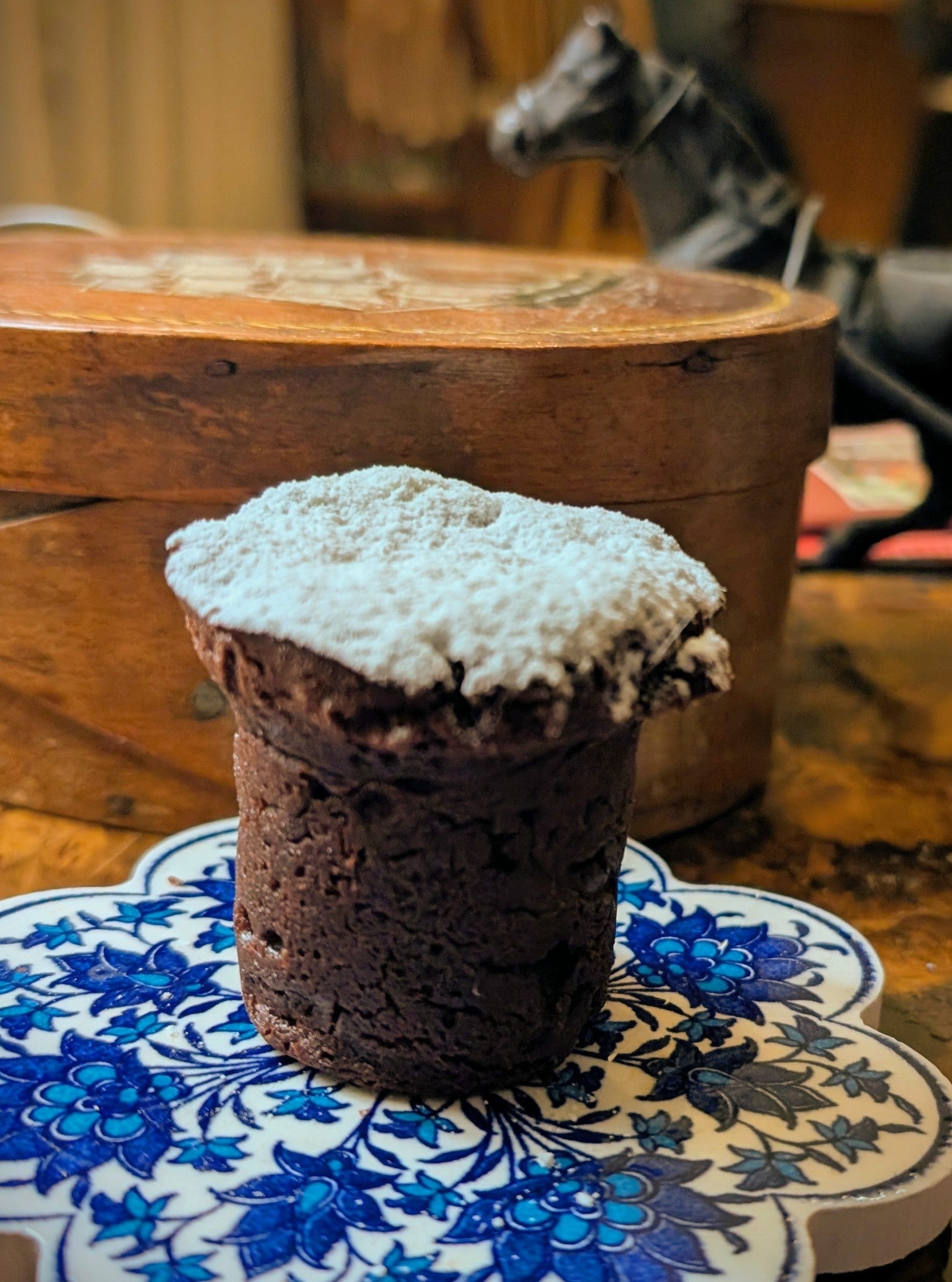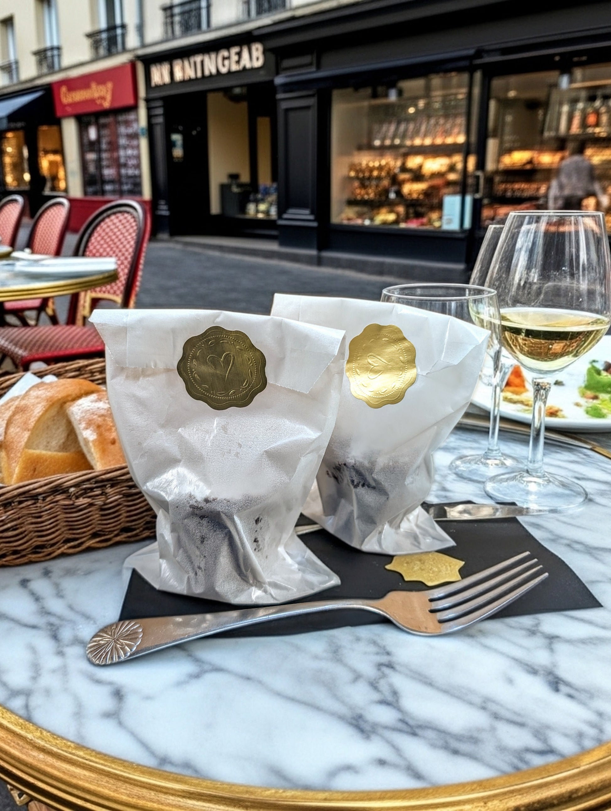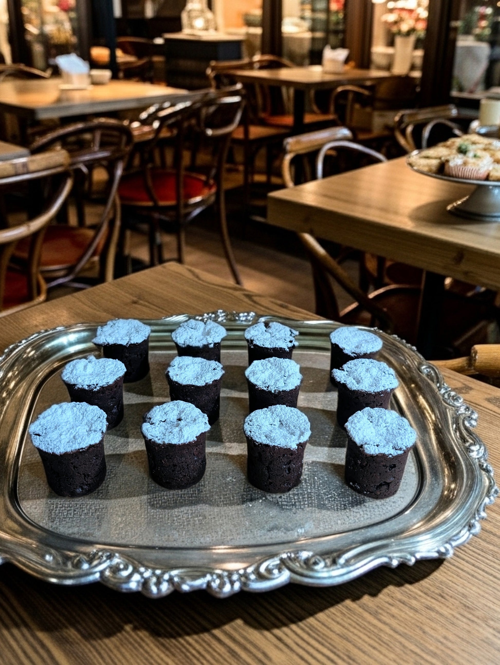 “Bouchons” are named so because of their cork like shape. Bouchon means Cork in French. These are most comparable to double chocolate brownies, but not at all like brownies. They are Very chocolatey and cocoa rich with a healthy dose of butter, but also not at all gooey. Crispy on the outside & sized for such decadence. They are perfectly sized little treat about 2" tall and 1½" wide. Sprinkled in top with powdered sugar. Such a beautiful mini celebration! The ingredients are: butter, sugar, organic cocoa, egg , flour, chocolate morsels, vanilla, salt, and LOVE.